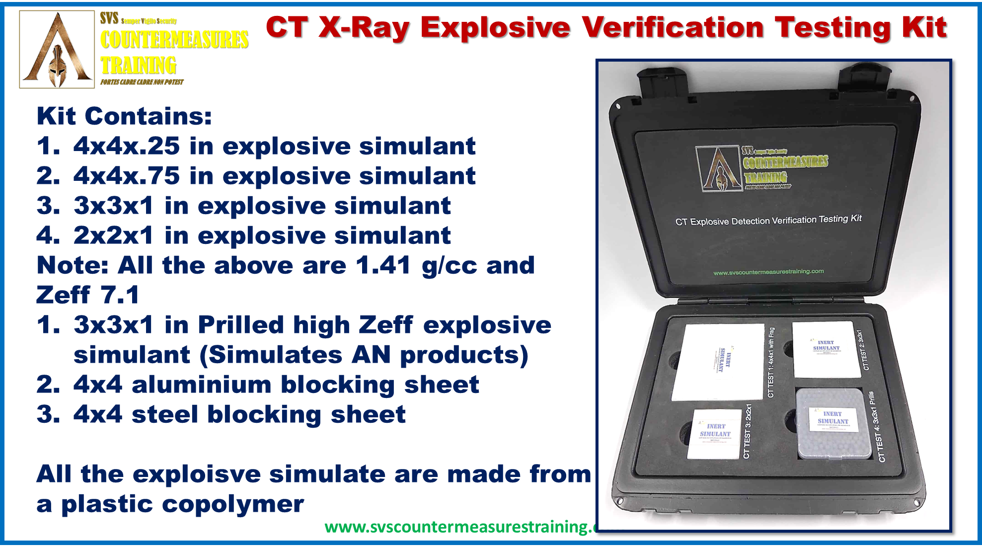 The SVS Aviation CT X-Ray Explosive Detection Verification Testing Kit allows you to verify before each day of screening that the systems is actually detecting explosives correctly.